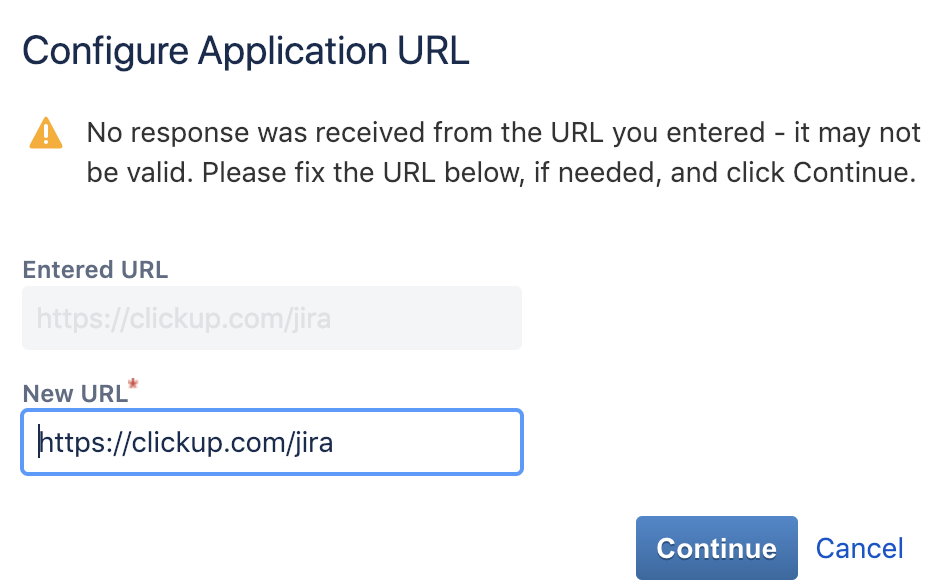 clickupclienten el campo Clave del Consumidor . - Regresa a la página de importación en ClickUp y pega la URL base de tu instancia de Jira, terminando con